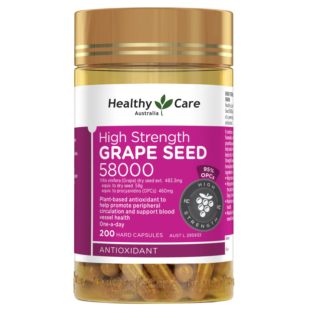 【商品名稱】HealthyCare加强版葡萄籽200粒58000mg 【建議劑量】Adults: Take 1 capsule daily or as directed by your healthcare professional. 【商品原文資訊】Chemist Warehouse 商品頁面 【代購服務條款】訂單政策:為確保商品的新鮮度與品質,我們的服務採「接單後採購」模式。因此,訂單成立後恕無法取消。預購與運送時程:所有商品皆由澳洲空運直送台灣。從您下單、當地採買到空運抵台,預計需要 10-21 個工作天。付款方式:將會在結帳頁面顯示匯款資訊。