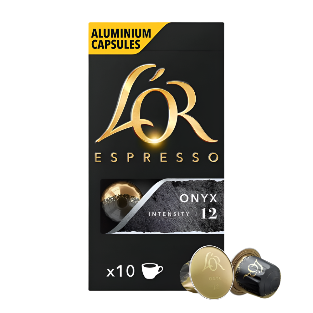 【L'OR Espresso Onyx】濃度等級12,膠囊咖啡,每盒10顆。深度烘焙的濃烈風味,帶有煙燻與黑巧克力的層次感。